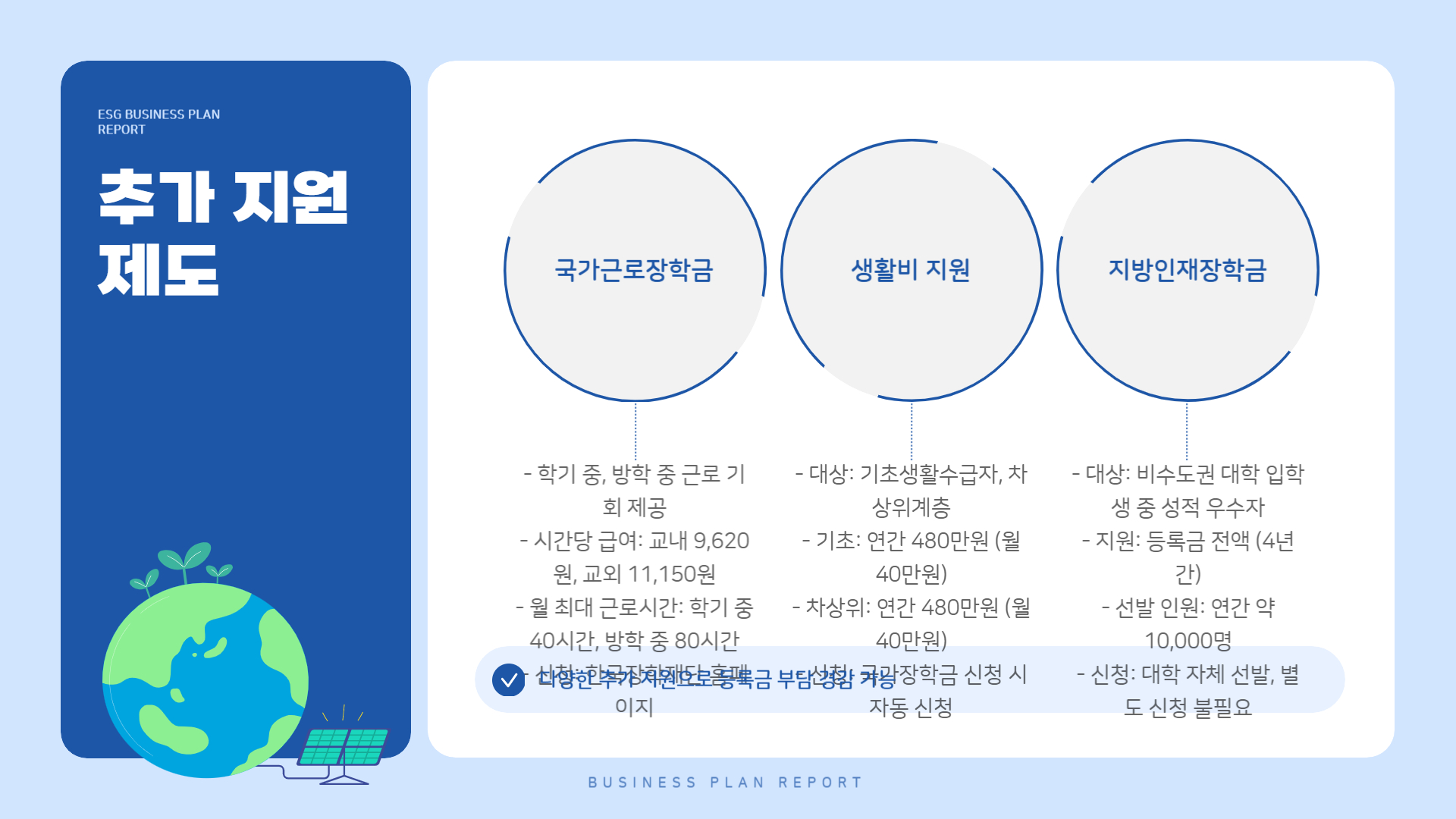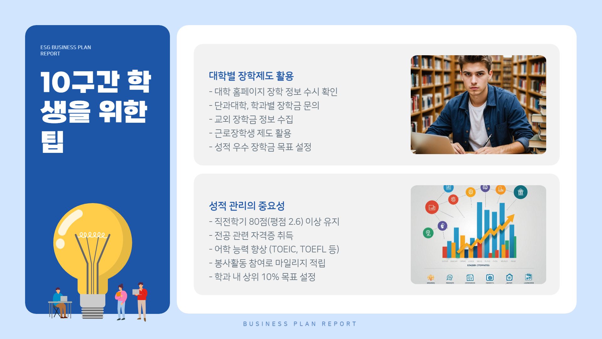- 국가장학금 외에도 성적 우수 장학금, 학과 장학금, 기업 연계 장학금 등 다양한 제도가 있음