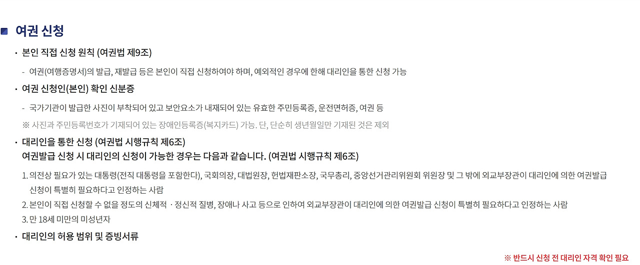 - 반드시 본인만 여권 재발급 온라인 신청 가능 (대리 신청 불가)